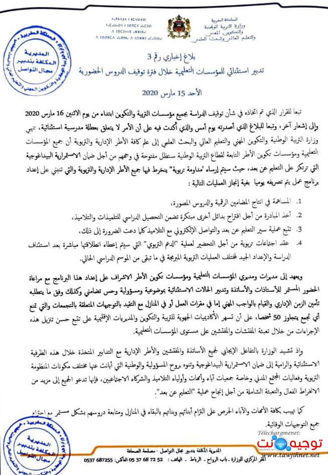 توقيف الدراسة بالمغرب ابتداء من 16 مارس 2020 كورونا منتديات توجيه نت