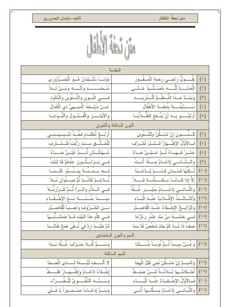 متن تحفة الأطفال Pdf